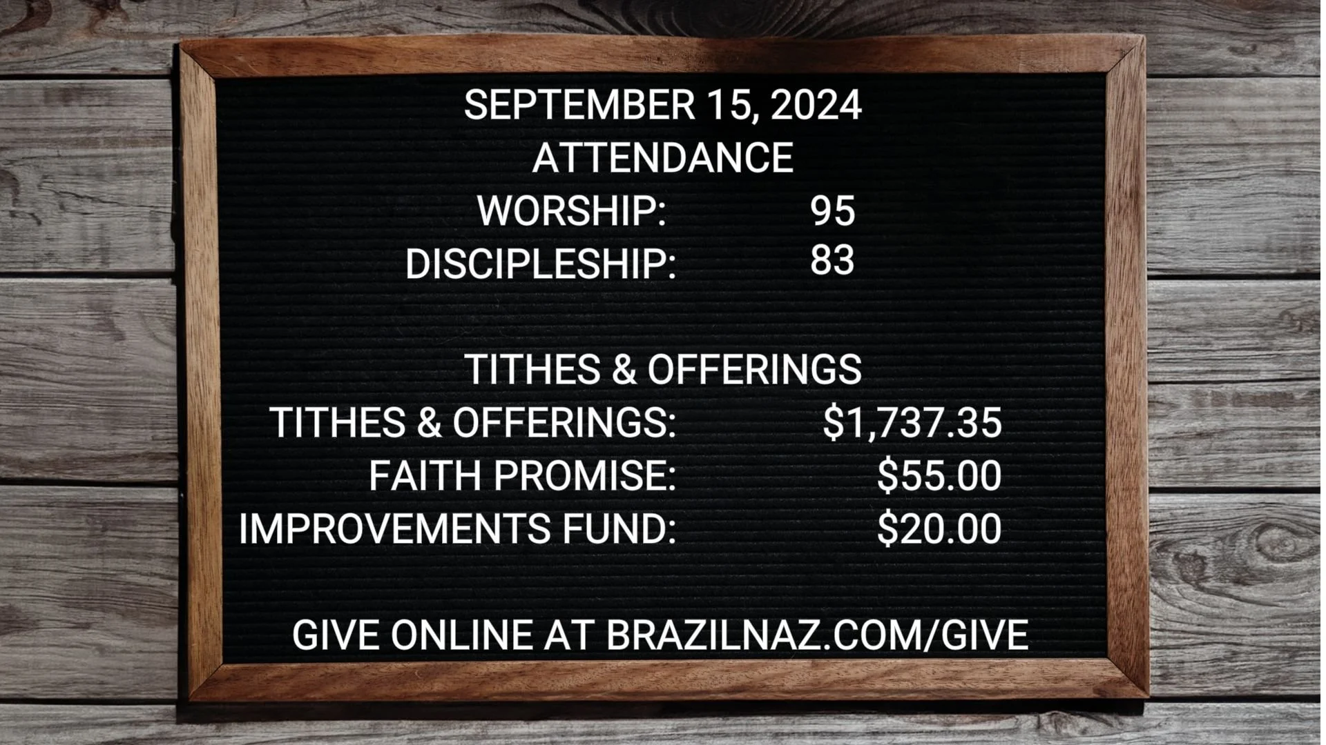 Our offering is collected in the offering boxes on each side of the foyer. Donation envelopes can be found at the welcome center.