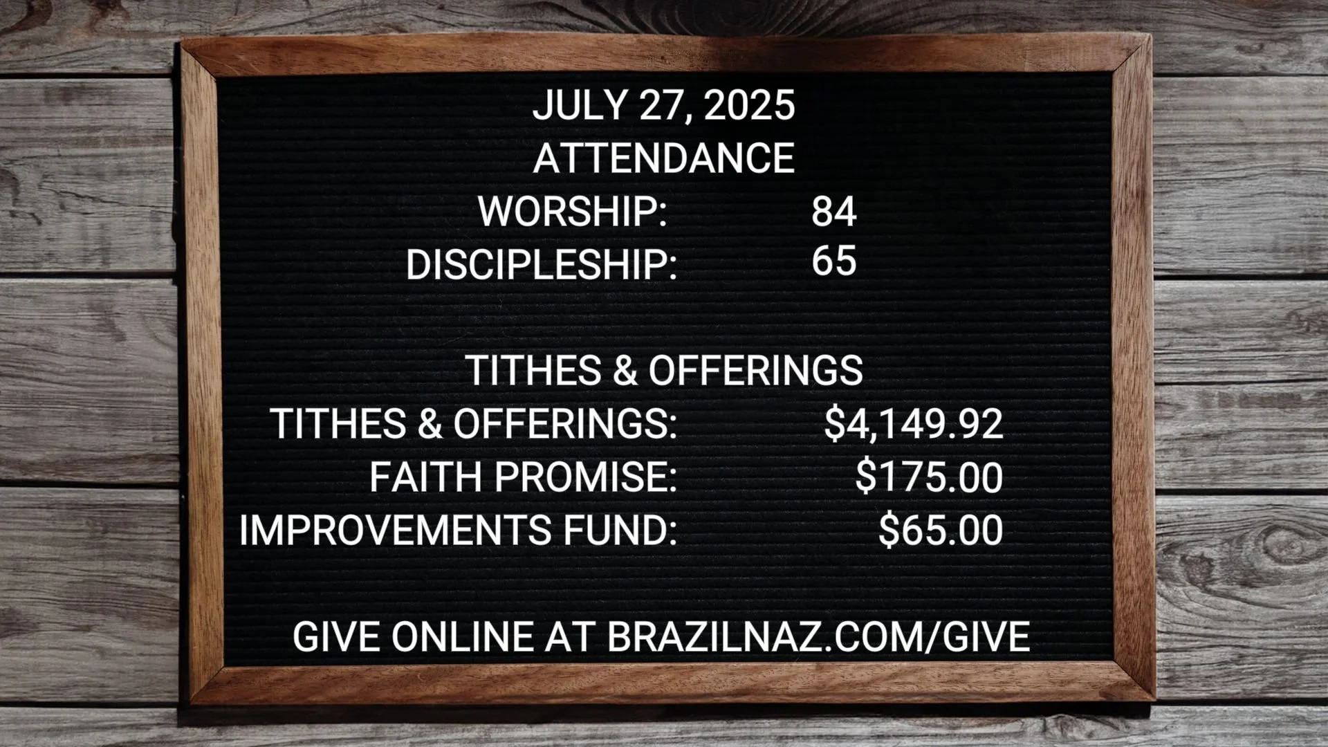 Our offering is collected in the offering boxes on each side of the foyer. Donation envelopes can be found at the welcome center.